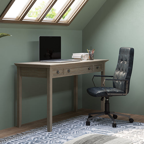 A home office can vary from a dedicated room in a large house to the corner of a room in a small apartment. No matter what the size of your home office space, you’ll find a home office desk from Simpli Home that works best for you. For smaller workspaces, a simple writing desk or ladder desk that can also function as an accent table is a great choice. Wide computer desks with storage offer spacious desktops to accommodate all that you need to be productive, like your laptop and a large computer monitor. Choose from styles that are all solid wood or that mix solid wood tops with metal legs or bases.