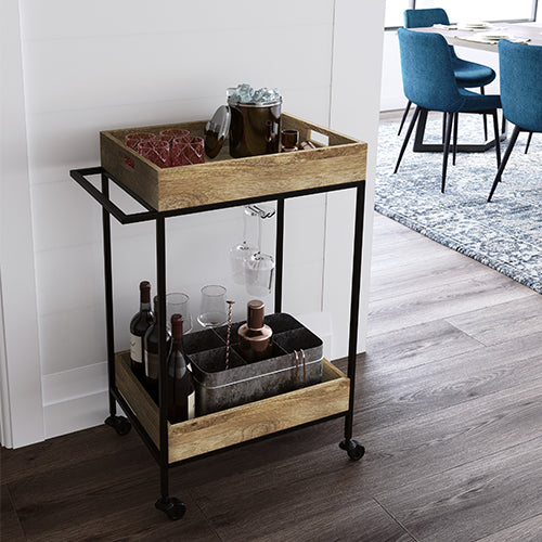 We offer dining room collections that make it easy to complete your dining space with high-quality, coordinating furniture. Our solid wood dining tables and dining chairs are sold in complete dining room sets or as individual pieces if you want to create your own. Need more space to put away dinnerware, flatware, and other dining accessories? Our solid wood buffets offer ample storage space while also providing a surface to display serving pieces. And our bar carts are essential for entertaining. They feature caster wheels for easy transport and open shelves for bottles, glassware, and snacks.