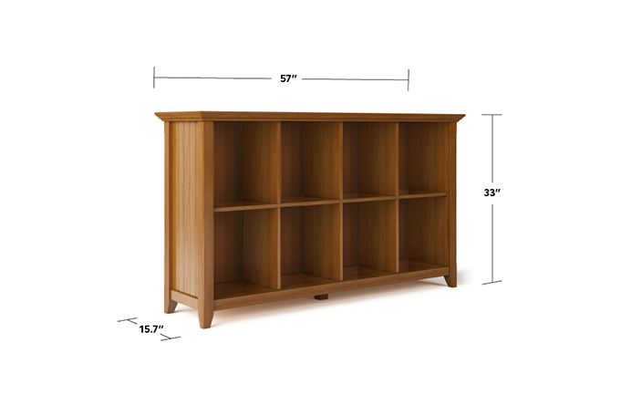 The clutter is sometimes overwhelming; books, CD's, mementos, vases, photos, sculptures, decor pieces... The list is endless. The Acadian 8 Cube Storage / Sofa Table is the ultimate solution for your storage needs. Display your books and decorative accents in dedicated display spaces. With molded top, tapered legs and grooved side panels the design of this piece enhances the appearance of all your items while the fixed shelves offer exceptional structural strength and durability.