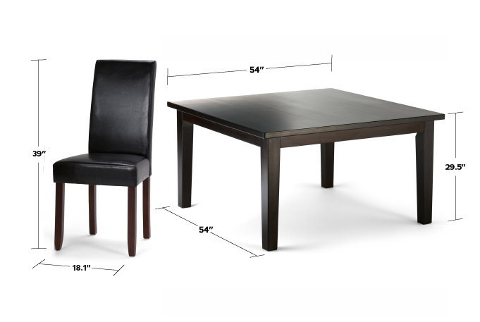 Elevate your dining space with this dining set, featuring the robust 54-inch Eastwood table paired with eight Acadian Parson Dining Chairs. The java brown rubberwood table boasts a thick, square top with inset legs. Its natural wood grain variations make each piece unique, protected by a durable hand-applied lacquer. The chairs, upholstered in satin cream vegan leather, provide both style and comfort with high backrests and plush foam cushioning. Crafted with solid rubberwood frames and kiln-dried wood, this set combines durability with elegance. The transitional design seamlessly blends modern and classic aesthetics, making it a versatile choice for various home decors. Easy to assemble and maintain, this dining set promises years of memorable family gatherings.