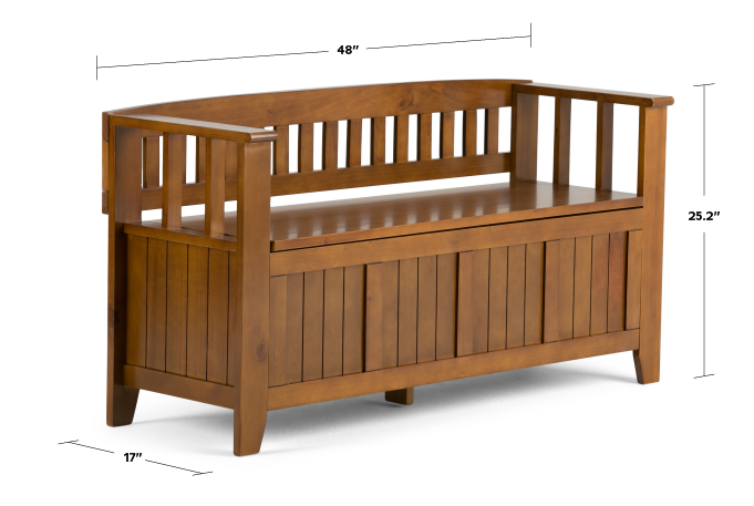 We designed our solid wood Acadian Storage Bench to make a great first impression. This functional, stylish and durable bench allows you to make a statement while creating added storage and seating for your entryway or mudroom. "Form follows function" design rules apply here as the bench features a convenient flip up lid allowing for easy retrieval of articles from the dual storage compartment below.