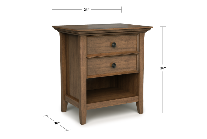 Keep your bedtime essentials within reach on the Amherst Bedside Table. The ideal bedside accessory, the nightstand has two drawers for concealed storage of small items as well as an open shelf on the bottom for books and larger items. Constructed of solid wood, this product is a sturdy piece that’ll fit wonderfully into your bedroom, living or family room decor.