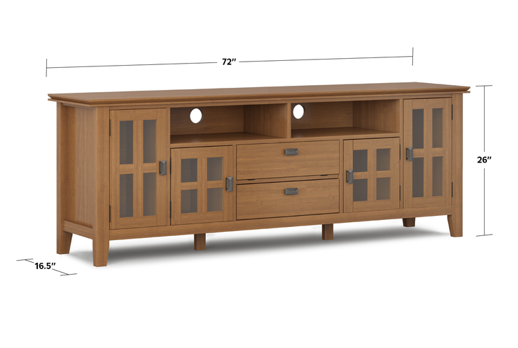Now that 80 inch flat screen TVs are more affordable, you need to have one. To enjoy it fully, you will also need the perfect TV Stand to position your TV just right. Look no further. The Artisan Extra Wide TV Stand is perfectly sized for TVs up to 80 inches. It has plenty of storage space for all your media and gaming devices. It has a large centrally located open area with two drawers as well as two enclosed spaces. The two large side storage cabinets open to one adjustable shelf each. The unit features cord management cut-outs for easy installation of TV and media components.