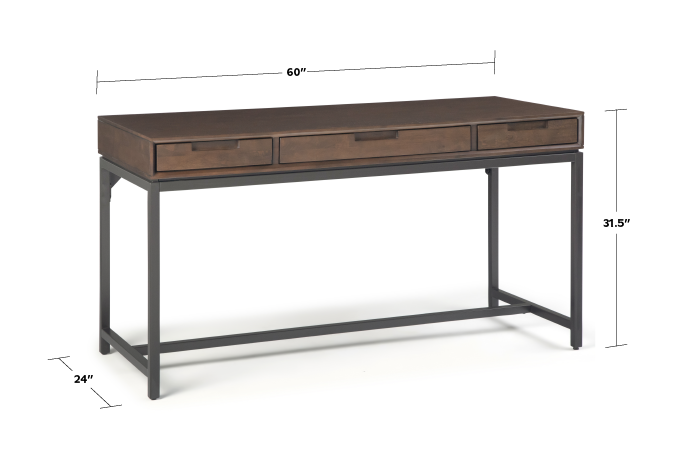 The Banting Collection is made from richly-grained solid Rubberwood. This mid-century modern industrial collection has a clean angular metal base, with square, simple modern drawer and table top. With no visible hardware, and only simple wood pull handles, the solid Rubberwood top, is simple and uncomplex. The Banting Desk has two working side drawers with ball bearing drawer glides and one centre flip down drawer/keyboard tray to maximize functionality. The 24" x 60" size is large enough for a well appointed home office, and narrow enough to fit into your living room or even kitchen. The Banting collection includes coffee, console, end tables, tv stands, sideboard buffet, desks and bookcase.