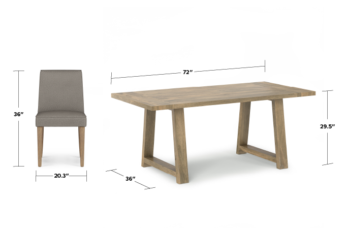 Elevate your dining experience with the Whitley and Bartow Dining Set, a perfect fusion of rustic charm and modern elegance. The 72-inch rectangular table, crafted from solid mango wood with a versatile grey wash finish, serves as a stunning centerpiece for any dining room. Its robust construction and natural wood grain variations ensure durability and uniqueness. Paired with the Bartow chairs, featuring sustainable rubberwood frames and soft woven fabric upholstery in taupe, this set offers both style and comfort. The chairs' ergonomic design and padded seats provide luxurious support for long dinners and gatherings. Whether you're hosting a family meal, game night, or tackling homework, this versatile dining set is ready for any occasion, promising years of beautiful, functional use.
