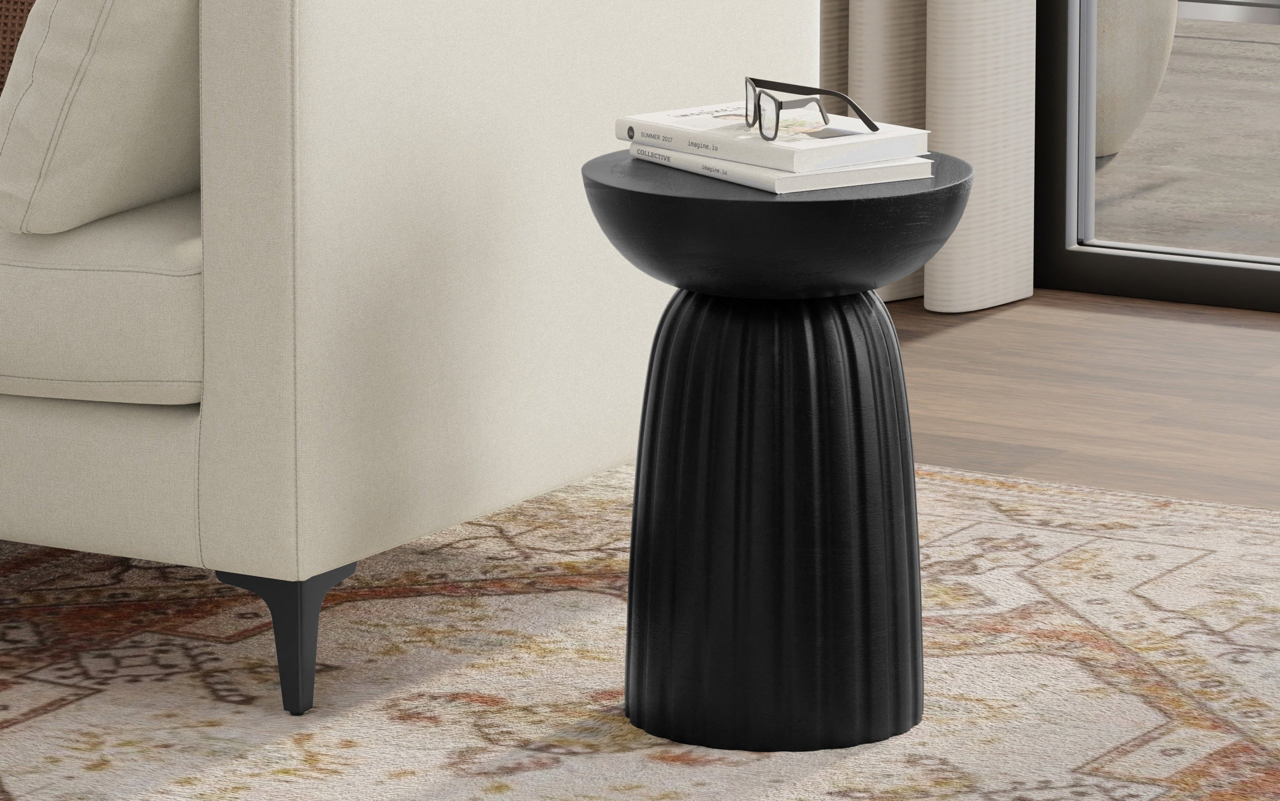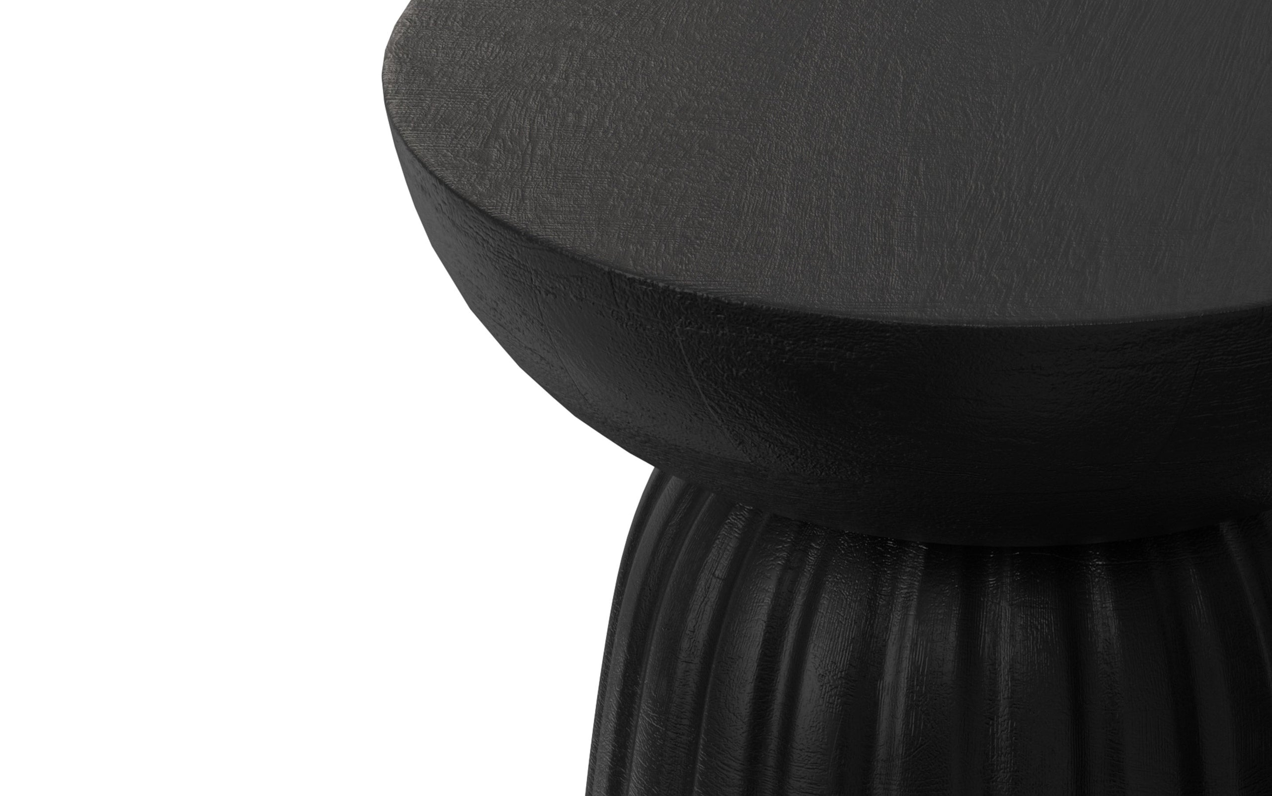 The Boyd 13 inch Stripe Accent Table in Black offers contemporary elegance with handcrafted details. Made from solid mango wood, this striped carved design creates a visually striking effect. The low-VOC, water-based lacquer finish enhances durability while keeping it eco-friendly. Its versatile, compact shape makes it perfect as a side table, nightstand, plant stand, or display piece in living rooms, bedrooms, family rooms, offices, or commercial settings.