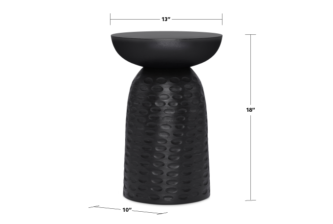 The Boyd Mango Wood Accent Table in Black exudes elegance and durability, crafted from sustainable mango wood with a bold black finish. Its hand-carved surface texture and rounded shape make it an ideal piece for modern, industrial, or contemporary spaces. Great for living rooms, family rooms, bedrooms, or basements, this table adds a dramatic touch to any interior.