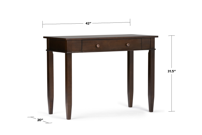 Your home office can be your special place again with this beautiful and functional office desk . Enjoy comfortable computing and work from home or office with the Carlton Desk. Its large surface area is ideal for a monitor, laptop or tablet and leaves enough room for paper, books and other writing accessories. It features a pull-out keyboard tray behind a flip down drawer front. Ideal for the home office or living room settings where it can be used in place of a Console Table.