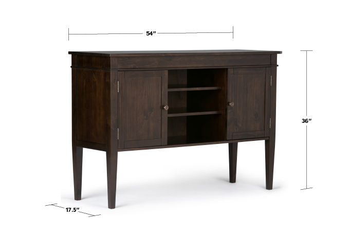 Having just purchased your dream large flat screen TV - you need the perfect TV Stand to enhance your viewing pleasure. Look no further. The Carlton TV Stand is perfectly sized for TVs up to 60 inches. The 36 inch height puts the TV at a level that is ideal for comfortable viewing. The Carlton TV Stand has plenty of storage and space for all your media and gaming devices. It has a large centrally located open area with two adjustable shelves. The two large side storage cabinets open to one adjustable shelf. The unit features cord management cut-outs for easy installation of TV and media components.