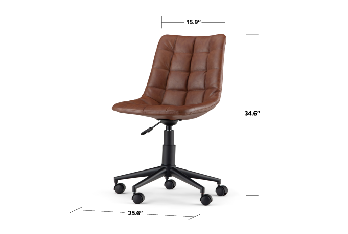 Modern design meets comfort with the Chambers Swivel Office Chair. Sit and relax in cushioned comfort with the curved padded seat and back. The adjustable seat, swivel and caster wheels make the Chambers Office Chair easy to customize to your particular needs. This chair is sure to make an impression and become the focal point in your home office.