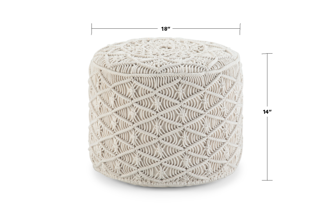 Pull the Coates Round Macrame Poufup to your favorite arm chair as a stylish footrest, or set it beside the sofa to offer an extra seat. The handwoven pouf is a versatile way to add pattern and character to your space. This light weight pouf is sturdy enough to support adults and children.