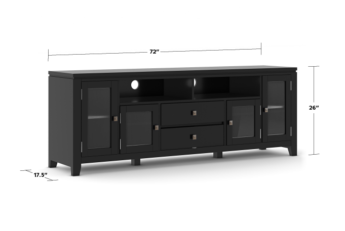 Now that 80 inch flat screen TVs are more affordable, you need to have one. To enjoy it fully, you will also need the perfect TV Stand to position your TV just right. Look no further. The Cosmopolitan Extra Wide TV Stand is perfectly sized for TVs up to 80 inches. It has plenty of storage space for all your media and gaming devices. It has a large centrally located open area with two drawers as well as two enclosed spaces. The two large side storage cabinets open to one adjustable shelf. The unit features cord management cut-outs for easy installation of TV and media components.