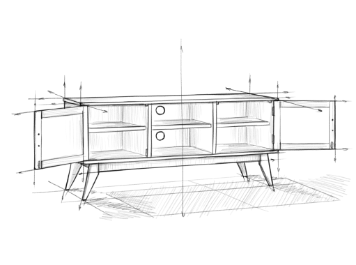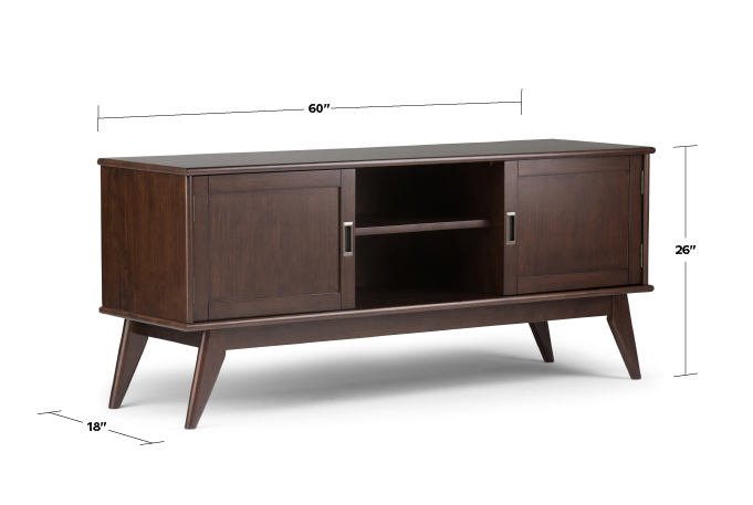 Your TV deserves a stylish and sturdy stand. The Draper Mid Century - Modern Low TV Media Stand is a well-designed piece of furniture. The center features two shelves with cable management cutouts for your electronics. Two side cabinets each have one adjustable shelf for your DVD or game collection. This 26†high stand can accommodate a TV up to 65â€.