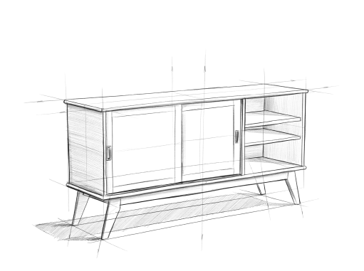 Draper Mid Century 4 Door Sideboard Buffet