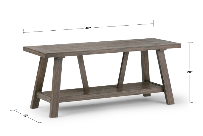 The Dylan Entryway Bench, made from solid wood, will give you that completed entrance way look you have been searching for. This bench not only offers you a rustic contemporary look, but it serves a practical purpose, as well. It will give you the perfect spot to take a seat and the large lower shelf offers space for shoes.
