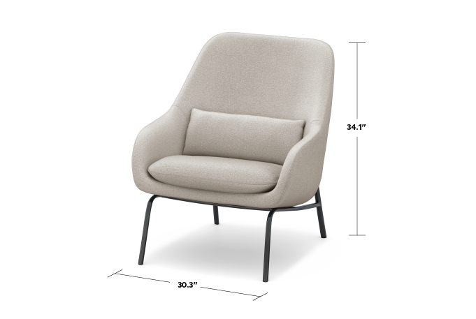 An updated version of the classic accent chair, Elmont looks modern and inviting. Its soft-edged, curvy form combines style & comfort. Featuring a cushioned seat, lower back accent pillow, piping detail and metal base and legs. Attractive from every angle, this contemporary chair is the perfect accent no matter where it stands.