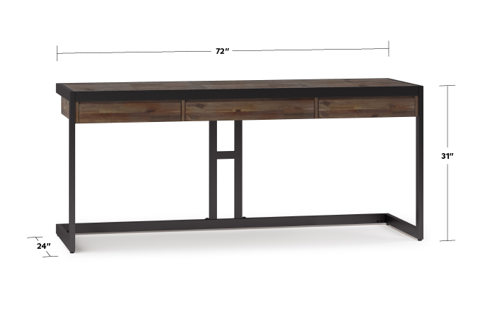Work in style with the Erina Desk. Combining industrial style and function this desk is crafted of solid Acacia with solid metal legs and frame. Generous in size, this desk offers a large spacious top surface and includes a keyboard tray for added convenience. Two side drawers provide plenty of space for small office supplies. The Erina Desk is a great solution both in home and at your office.