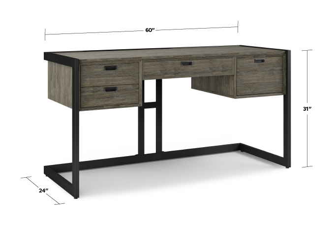 Work in style with the Hampden Desk. Combining industrial style and function this desk is crafted of solid Acacia with solid metal legs and frame. Generous in size, this desk offers a spacious top surface and includes a keyboard tray for added convenience. Three side drawers provide plenty of space for small office supplies.