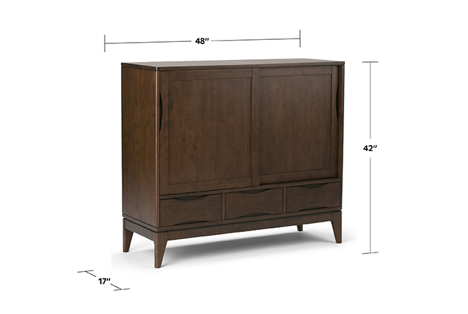 The Harper Medium Storage Cabinets are functional and versatile pieces crafted of solid hardwood with a rich finish. Each feature two notched-handle doors which slide open to reveal two adjustable shelves that you can reconfigure to suit your needs. For more compact storage, each cabinet also has three bottom drawers. Use these practical pieces together in one room or in different rooms for a cohesive look throughout your home.