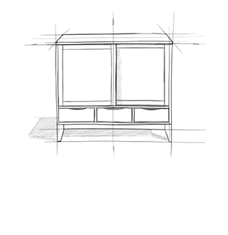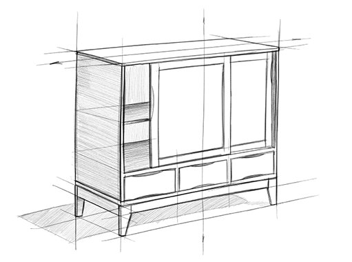 - Each cabinet features a large space behind two (2) sliding doors with two (2) adjustable shelves and three (3) bottom drawers with metal drawer glides.