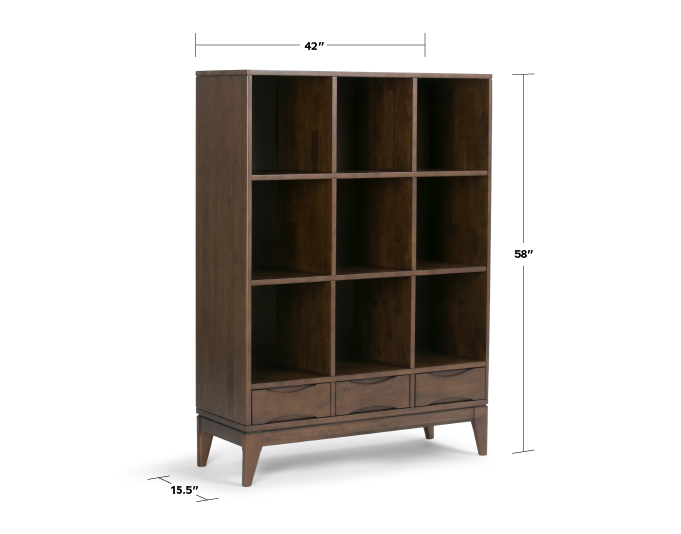 The Harper Cube Storage with drawers provides the ultimate solution for all of your storage needs. This storage cabinet is crafted of solid hardwood with a rich warm finish. Display your books and decorative accents on dedicated display area for a clean, distinctive look. The three notched handle bottom drawers provide for more compact and organized storage space. Update your home with the contemporary mid-century look of the Harper Cube Storage.