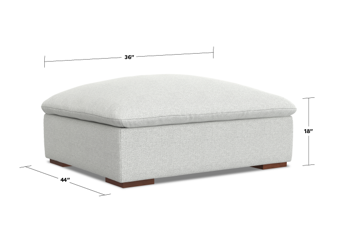 - This ottoman with an attached, pillow-top seat for a relaxed look can be used on its own as a footrest or impromptu coffee table or placed in front of our handcrafted Jasmine Modular Sofas to create a flexible sectional; this module accommodates up to 300 lbs.