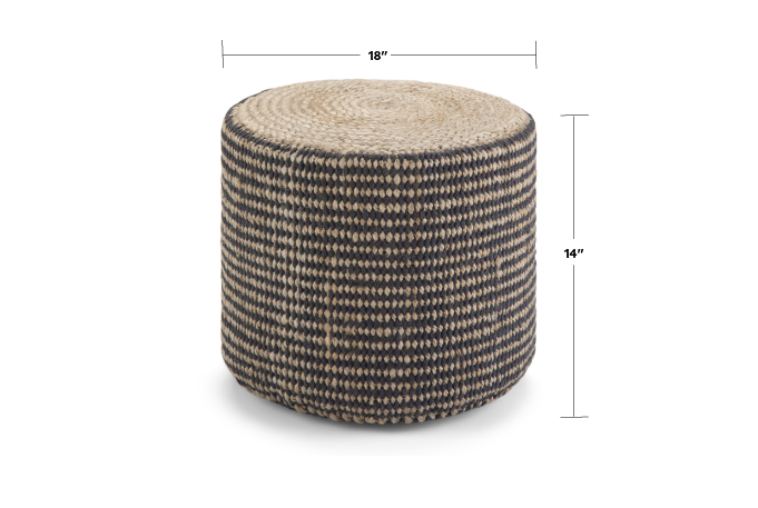 Poufs are trendy, create an updated look in your space with the Larissa Round Pouf. Constructed out of woven natural jute to create a pouf that's light weight, but durable. Works well as seating for guests or a place to rest feet at the end of the day.