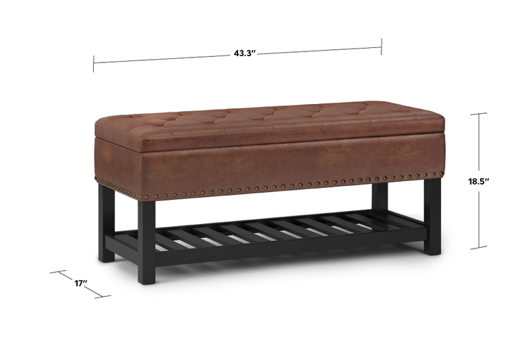 When the clutter is overwhelming, and you are looking for that perfect solution - look no further. For a stylish solution to your storage needs, the Lomond Rectangular Storage Ottoman Bench features tufted detail, nail head trim and an open slat bottom storage area. A large interior storage space is located under the hinged lid. The unit is upholstered with durable fabrics and is extra strong and sturdy. Whether you use this Ottoman Bench in your entryway, living room, family room, basement or bedroom, this practical attractive ottoman comes in a variety of colors and upholstered options.