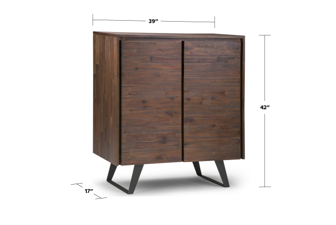 The Lowry Storage Cabinets are stylish, contemporary, and versatile pieces. They're crafted of solid acacia wood with a rich finish that's complemented by solid metal legs. Each piece features two notched handle doors that open to four adjustable shelves that you can reconfigure to suit your needs. Whether used together, or in separate rooms, these cabinets create a cohesive look throughout your home.