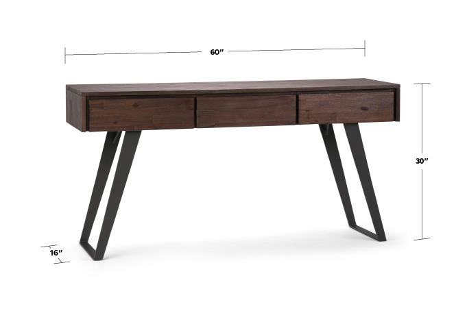 Let the Lowry Console / Sofa Table add a touch of urban industrialism to your living space. The table is handcrafted with a perfect combination of metal and solid Wood. The Lowry Console / Sofa Table doesn't sacrifice style for function. It features two drawers providing plenty of storage space. Whether you use it in the living room, family room or entryway it'll be sure to make a statement.