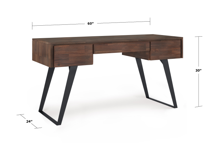 Combine industrial, urban style and function with the Lowry Desk. This desk is crafted of solid Acacia and solid metal legs. Generous in size, this desk offers a spacious top surface and includes a keyboard tray for added convenience. Two notched handle deep drawers provide plenty of space for office supplies. Working from home office never felt so good.