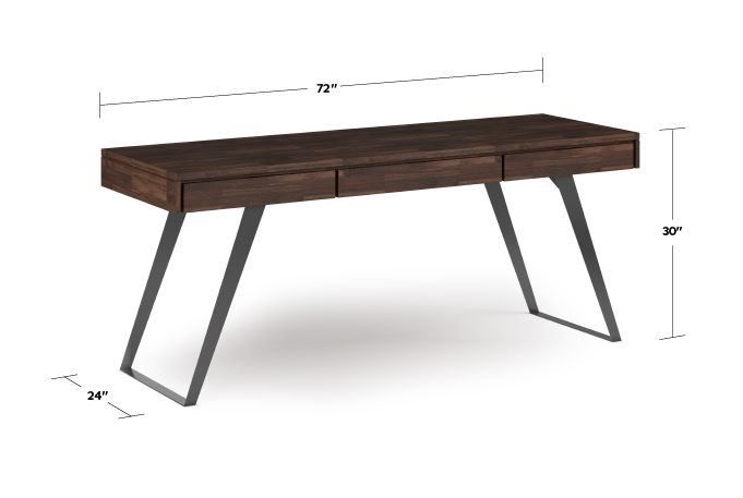 Combine industrial, urban style and function with the Lowry Large Desk. This desk is crafted of solid Acacia with solid metal legs. Generous in size, this desk offers a spacious top surface and includes a keyboard tray for added convenience. Two notched handle drawers provide plenty of space for small office supplies. Working from home office or den never felt so good