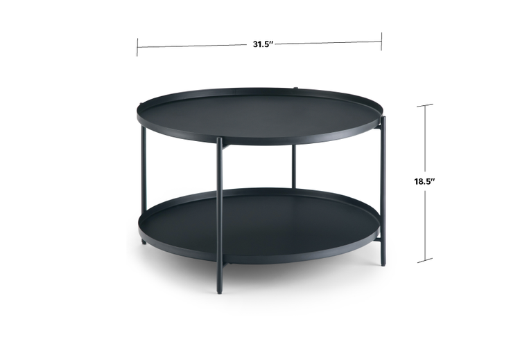 The Monet Metal Collection is designed influenced by Industrial, Mid Century Modern style. The round metal collection, has sleek round tubular legs and round removable trays for easy transport of food or other items. This industrial collection with its minimalist and clean lines, looks stunning in todays modern and contemporary homes. The Monet Metal Coffee Table has a removable table top tray and open bottom shelf tray.