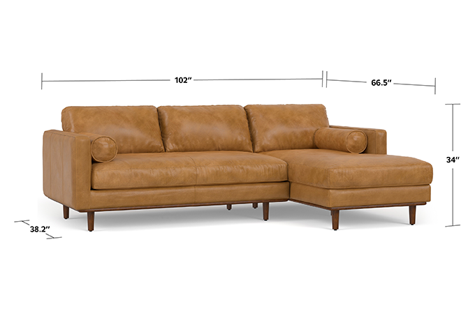 - Generously sized to offer comfortable seating for 4 people, this right-facing, Mid Century - Modern sectional sofa measures 102-inches wide and accommodates up to 1,200 lbs.