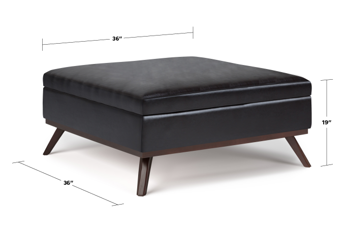 Update your space with the Owen Mid Century Square Coffee Table Storage Ottoman. Its modern style will add a fresh on trend look to your home. It features a hydraulic lift up lid and a large interior storage space. Made with solid wood and premium fabrics for stylish durability and comfort. Whether used in the living room, family room or den, it will be the showpiece that completes the room.