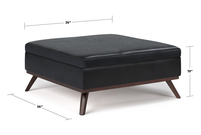 - Dimensions: 36" D x 36" W x 19.2" H – A well-proportioned square ottoman that combines generous surface space and concealed storage, ideal for both compact and open-concept living areas.