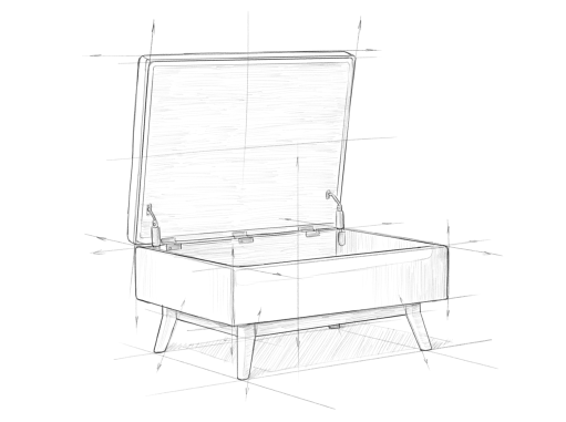 - Features a hydraulic lift up lid that opens to a large interior storage space and child safety hinge