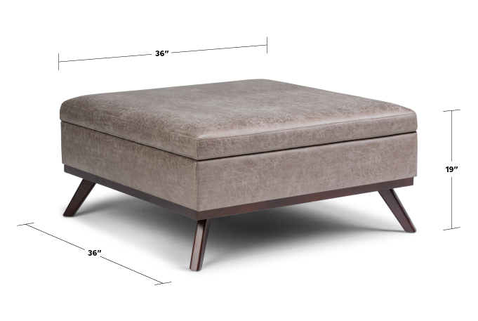 - Dimensions: 36" D x 36" W x 19.2" H – A well-proportioned square ottoman that combines generous surface space and concealed storage, ideal for both compact and open-concept living areas.