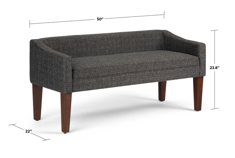 Make a statement with the Parris Upholstered Bench. This stylish bench features a low-profile back design with swooped arms. At Simpli Home, we always insist on using the best materials and construction. The high-density foam seat, solid wood construction and premium fabrics delivers superior and long-lasting comfort and support in a package of exceptional beauty. Whether adorning the end of your bed in the master suite or simply sitting by the entryway this bench offers both seating space and style.