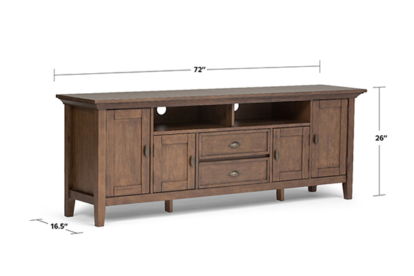 Now that 80 inch flat screen TVs are more affordable, you need to have one. To enjoy it fully, you will also need the perfect TV Stand to position your TV just right. Look no further. The Redmond Extra Wide TV Stand is perfectly sized for TVs up to 80 inches. It has plenty of storage space for all your media and gaming devices. It has a large centrally located open area with two drawers as well as two enclosed spaces. The two large side storage cabinets open to one adjustable shelf each. The unit features cord management cut-outs for easy installation of TV and media components.