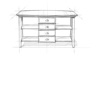 - Features four (4) drawers with metal drawer glides and four (4) open shelves