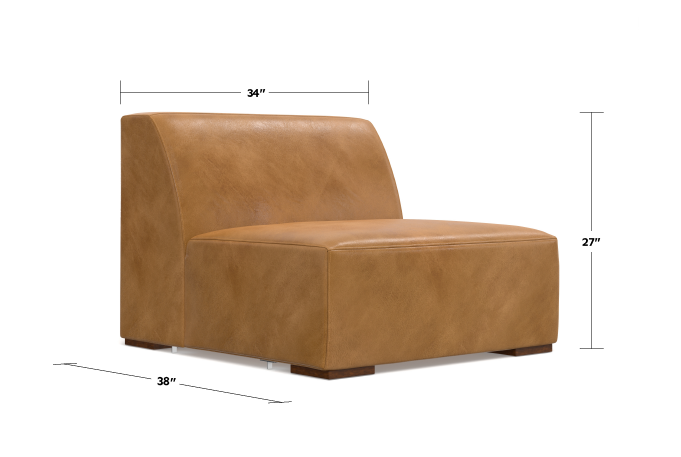 - This modern-style center sofa module with a clean, boxy silhouette and a gently sloping back can be used on its own as an armless chair or combined with other pieces in our handcrafted Rex Modular Sofa Collection; this module accommodates up to 300 lbs.