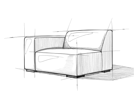 - The back of this cushionless sofa module gently slopes for a slightly reclined position and is padded with high-density foam wrapped in high-quality polyester for a supremely comfortable seating experience, while the armrest is padded for softness and extra-wide to conveniently keep necessities within reach.