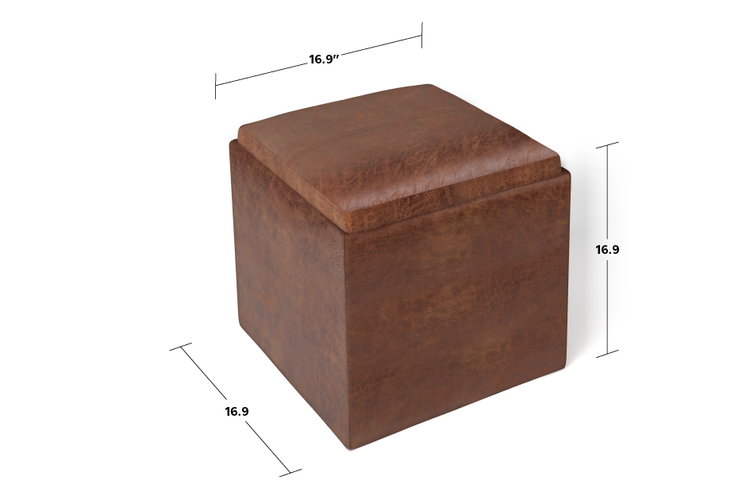 Great things really do come in small packages. If you are looking for a stylish, well made multi-functional storage solution, look no further than the Rockwood Cube Storage Ottoman with Tray. It is made from durable Denim Blue faux leather and is extra strong and sturdy. It features a handy tray and large interior storage space. Whether you use this ottoman in your living room, family room or basement, it will allow you to hide away all that mess, gain extra seating or simply use as a side table.