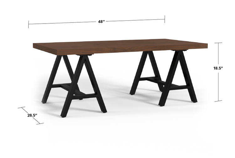 Oversized yet streamlined and stylish, the Sawhorse Large Coffee Table is the essence of Modern Industrial style, combining two high-quality, durable materials: solid wood and metal. Measuring 48" wide by 32" deep, this living room table was designed to be extra large for easy placement in front of a sectional sofa or 3-piece sofa configuration. The thick, rectangular tabletop is supported by sawhorse-style legs with crossbar supports for extra stability.