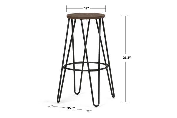 Inspired by industrial style, the Simeon Counter Stool’s minimalist look makes it a versatile piece of furniture that will enhance any space. Sit comfortably with support and stability on the solid wood seat that is anchored by a hair pin leg metal base and foot rest. On trend and simple in design, this counter stool will be a great addition to any kitchen or bar.