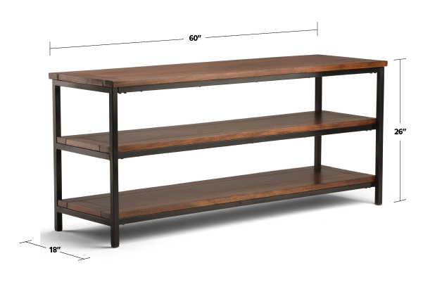 Skyler furniture is industrial in sensibility, modern in approach and perfect for the stylish individual who is looking for that unbelievably stunning and practical TV Stand for TVs up to 65 inches wide. The box shaped steel metal base with black finish mixed with solid Mango Wood fits smoothly into most modern, contemporary or eclectic home designs.