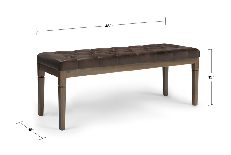 Bring the luxurious French Country feel to your living space with the Waverly Tufted Ottoman Bench. The tufting adds just the right amount of opulence while the simplicity of the notched legs make it the perfect transitional ottoman suitable for any decor. Made with soft, high quality fabrics for stylish durability. This classic and elegant ottoman will look striking in the entryway, living room or your bedroom.