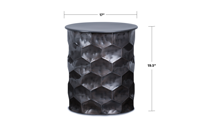 Take your decor to the next level with the Whitney Metal Storage Side Table. This piece is hand-crafted for a look that is as unique as your style. The table features plenty of storage with a lift off table top and on trend honey comb design detail. Use the accent table as an end table or bed side table.